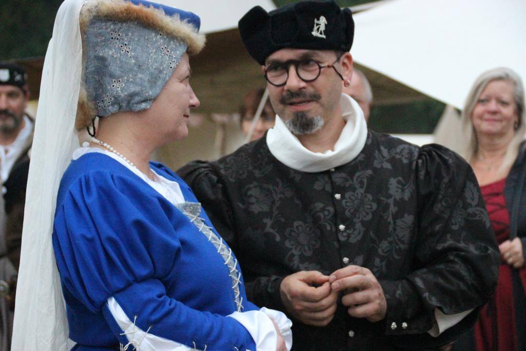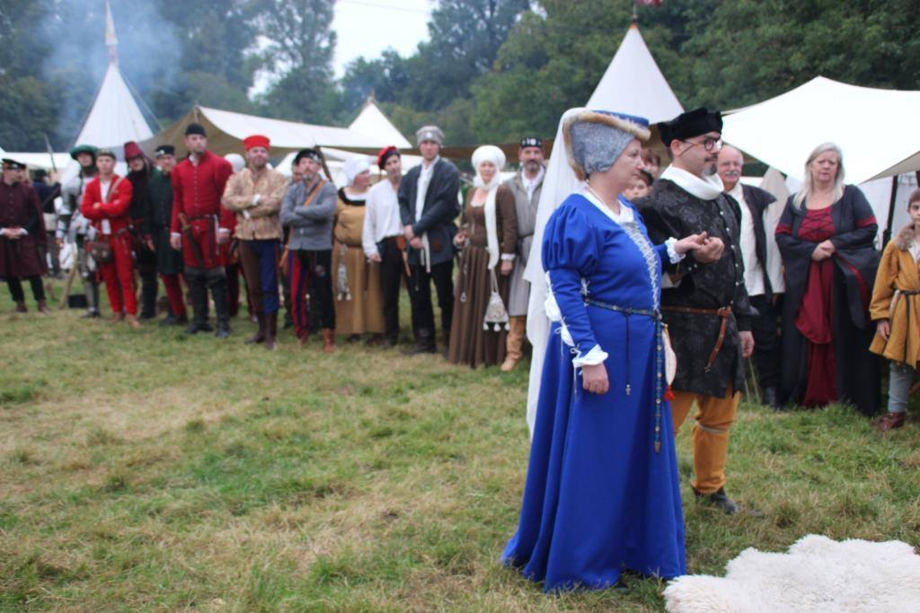 Impressionen von der Schwurbruderschaft zwischen Tristan und seinem Wahlbruder Phillip zu Katzenelnbogen 2022 im Lager der Knappenschule. Im Anschluss wurde der Knappe Kuno zum Ritter geschlagen.